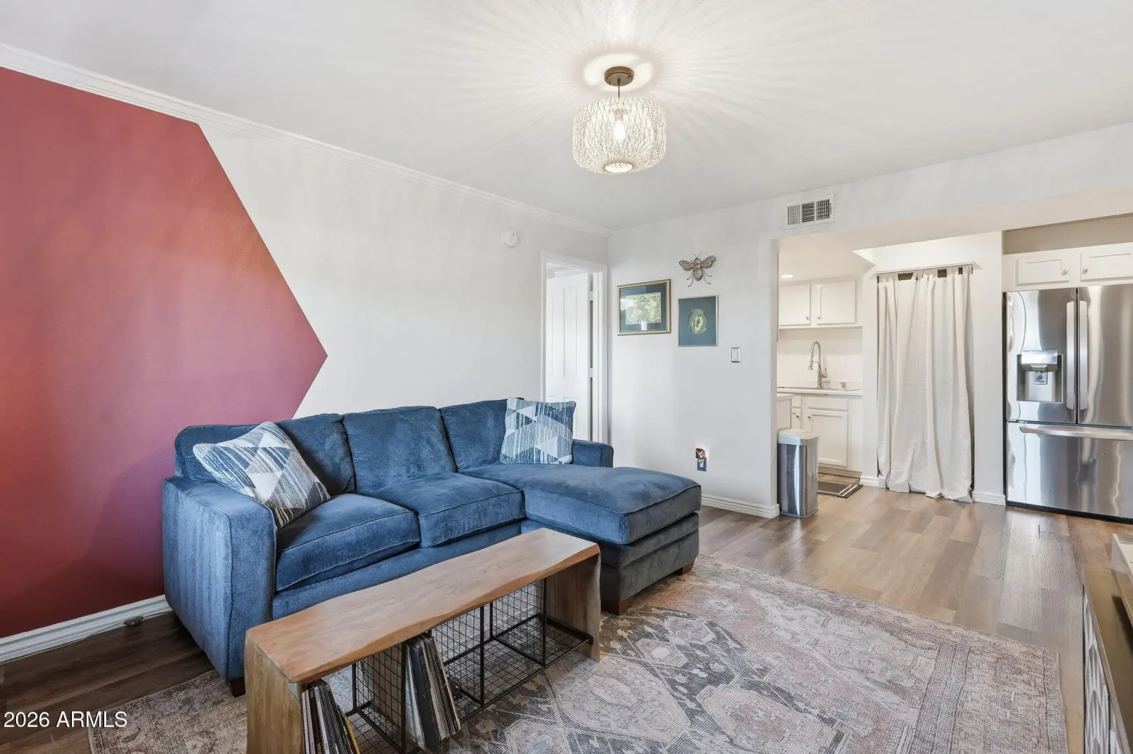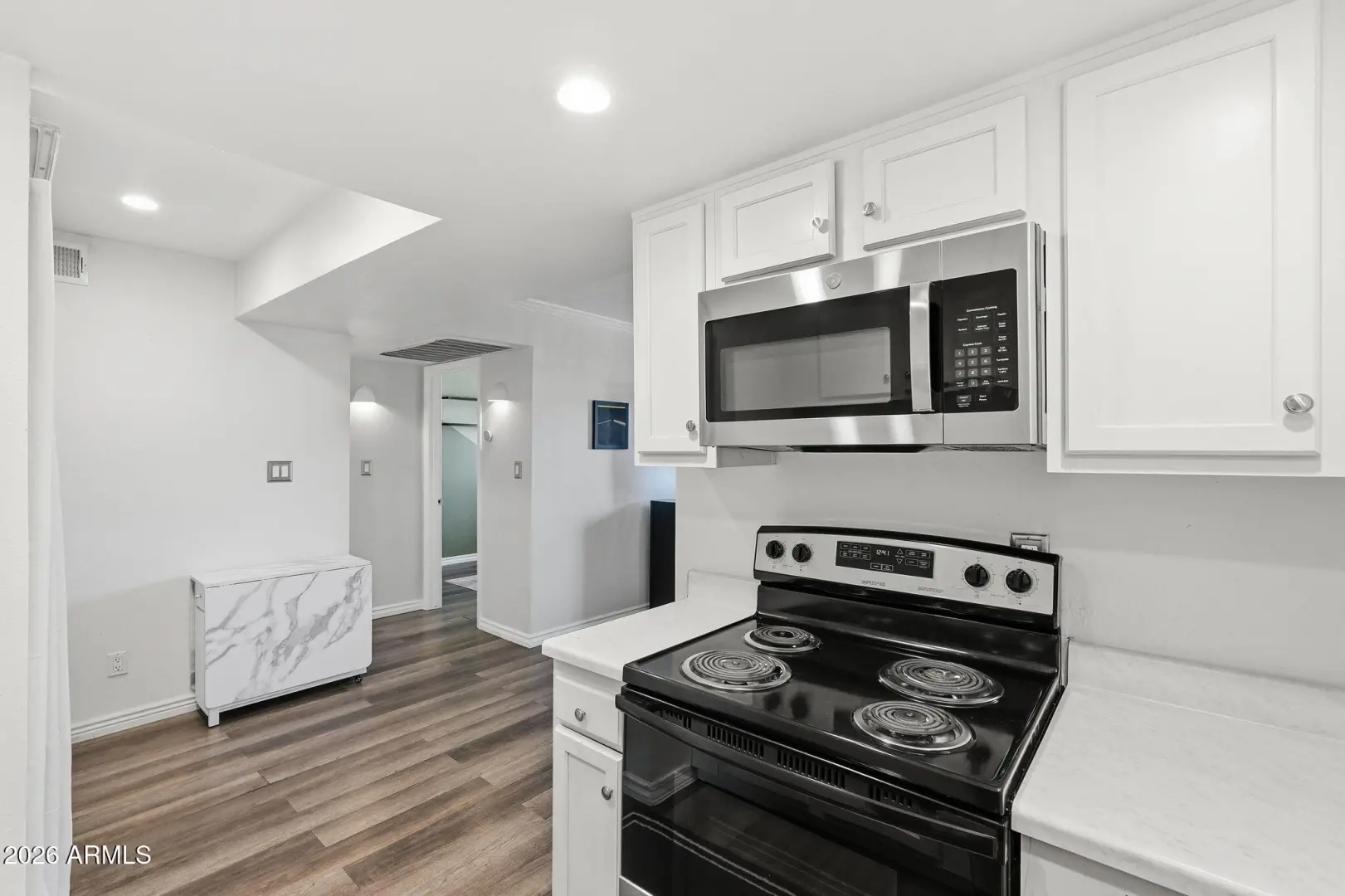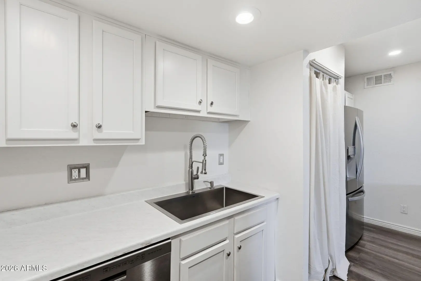 Beautifully updated 2 bedroom, 2 bath condo offering 816 sq ft in an ideal Phoenix location. This thoughtfully designed SPLIT floor plan features a SPACIOUS living area and generously sized bedrooms each with its own full bath and large WALK-IN closet for plenty of STORAGE.The updated kitchen showcases UPDATED modern WHITE CABINETRY and fixtures and the in-unit laundry adds everyday convenience. Enjoy a PRIVATE front patio with additional storage-perfect for relaxing or extra space.Located in the GATED Shamrock Glen community, residents enjoy lush landscaping and a sparkling pool. With easy access to major freeways, shopping, dining, and entertainment, this home combines comfort, convenience, and style.