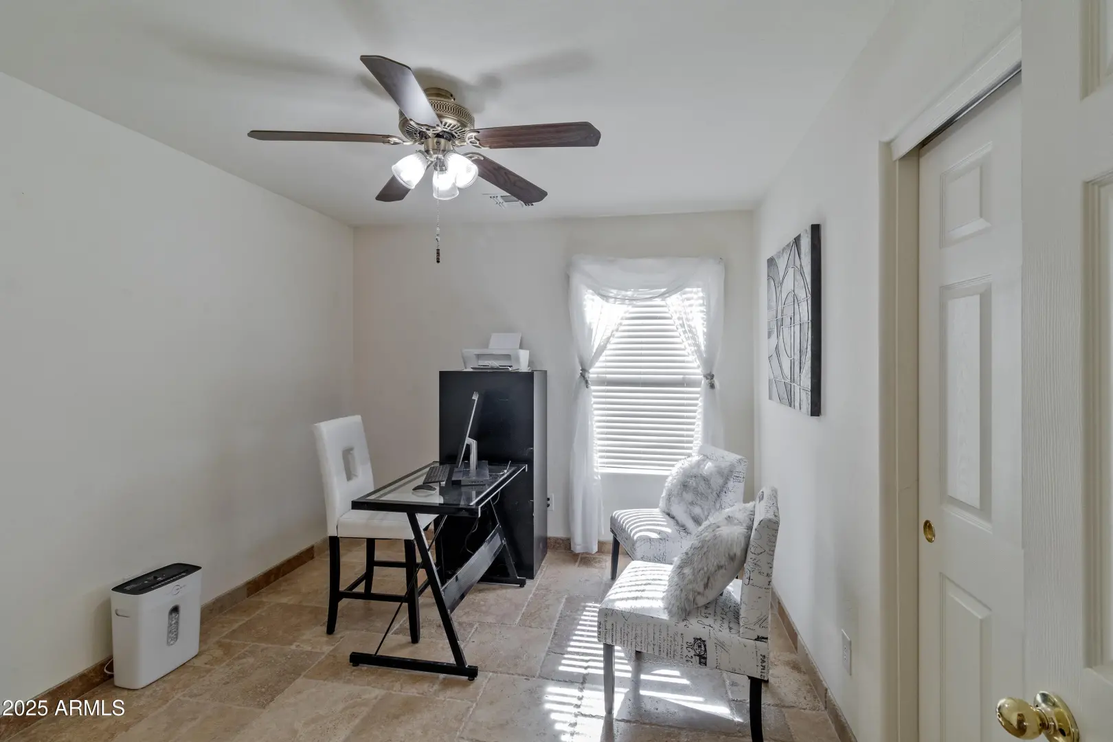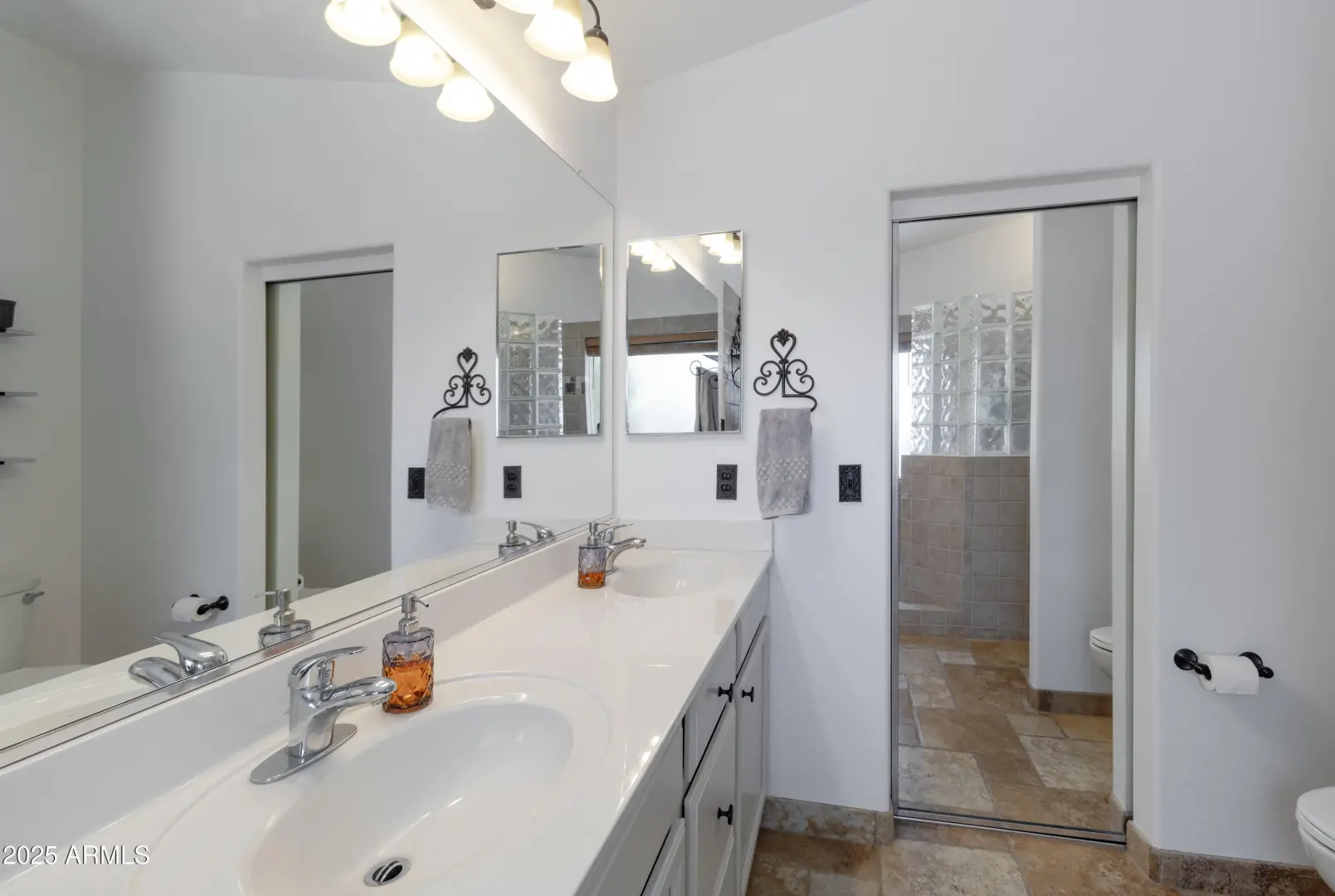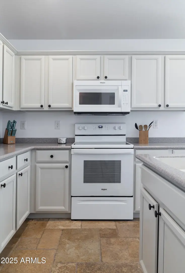 Minutes away from all Queen Creek has to offer, this spacious home lives larger than it's numbers. Situated on a private Corner Lot, this 4 Bedroom, 3 Full Bathroom home has many upscale features: Dual Primary Suites, established Landscaping, Solar Panels and a Stunning Pool with waterfall fountain. Step inside to find limestone floors throughout and an open concept kitchen-living area with a cathedral ceiling - perfect for entertaining family & friends. The pool features BOTH a heater and cooling unit for year round enjoyment.