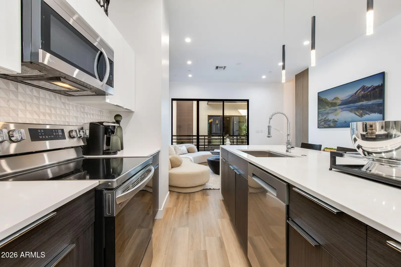 Introducing the epitome of modern home living in the heart of Arcadia - welcome home to the Arcadian Phoenix. Nestled in the coveted 85018 area code, these modern townhomes redefine living with their spacious floor plans and an array of amenities. Step inside to discover a haven of elegance, boasting 10-foot ceilings on the main living floor and large windows that flood the space with natural light. The gourmet kitchen seamlessly merges with the inviting family room, creating the perfect setting for both everyday living and entertaining. Revel in the exquisite finishes, featuring stunning cabinetry, sleek quartz countertops, and timeless stainless-steel appliances. Experience true architectural brilliance with the inclusion of a charming Juliet balcony.