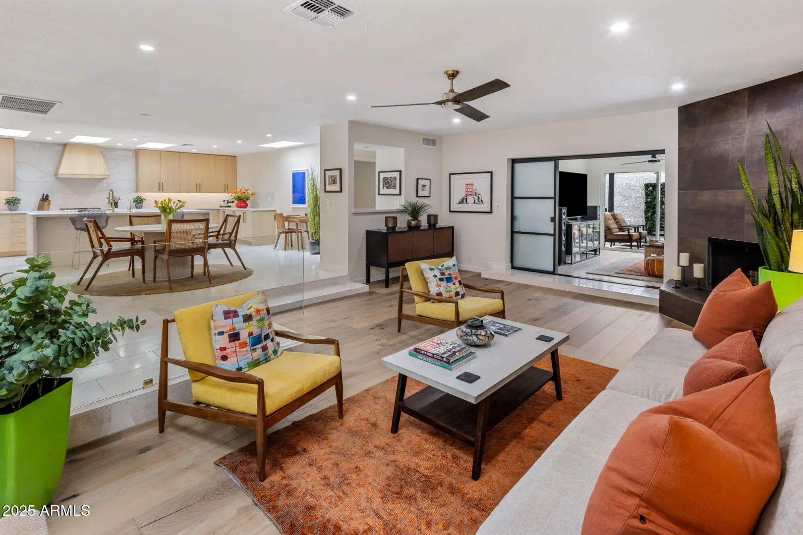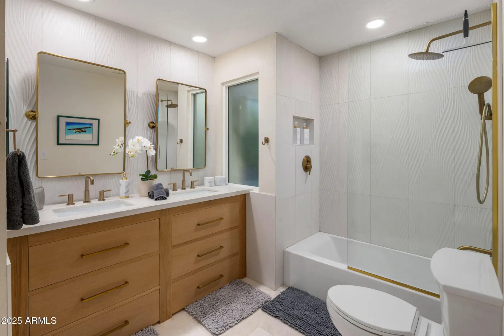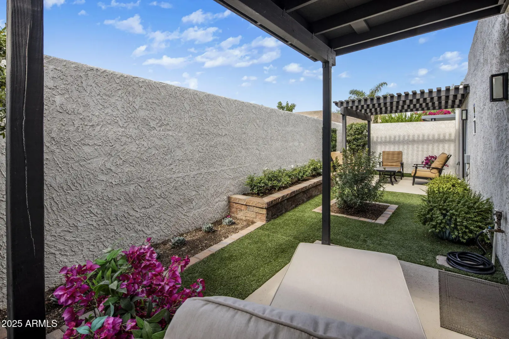 Stunning modern townhouse in prime McCormick Ranch location just minutes from high-end shopping, acclaimed restaurants, scenic walking paths, featuring a serene heated community pool and spa with breathtaking waterfront views of Camelback Mountain and the McCormick Ranch Golf Course. This fully renovated townhouse features a chef's style kitchen with custom woodgrain soft-close cabinetry, elegant quartz countertops that extend to a full backsplash, and a waterfall-edge island that's perfect for entertaining. All-new stainless-steel appliances complete the sleek, open-concept design. The split floor plan offers two spacious bedrooms with private outdoor access, plus a versatile flex room ideal as a home office, den, or third bedroom. Retreat to the luxurious primary suite, featuring a